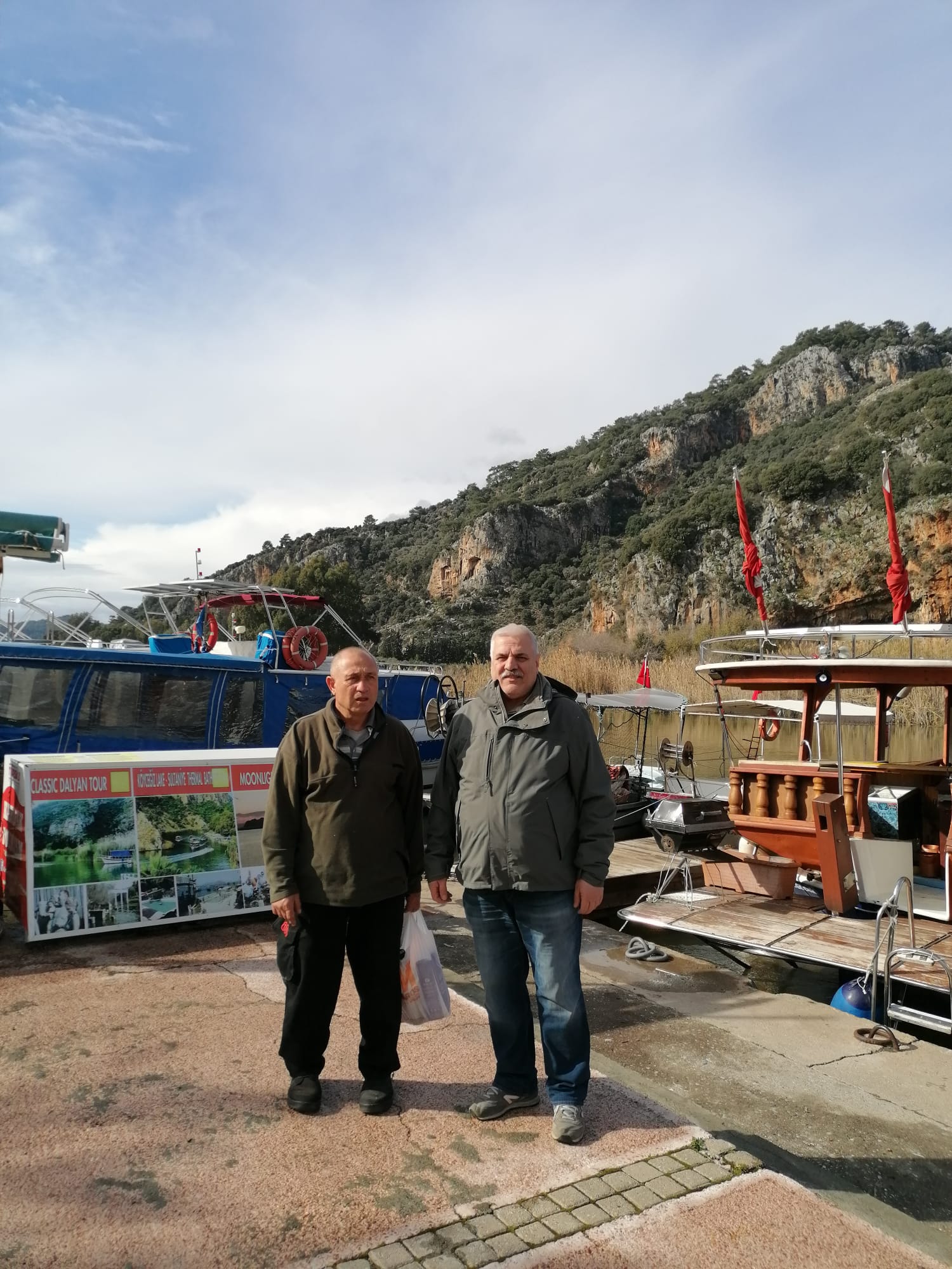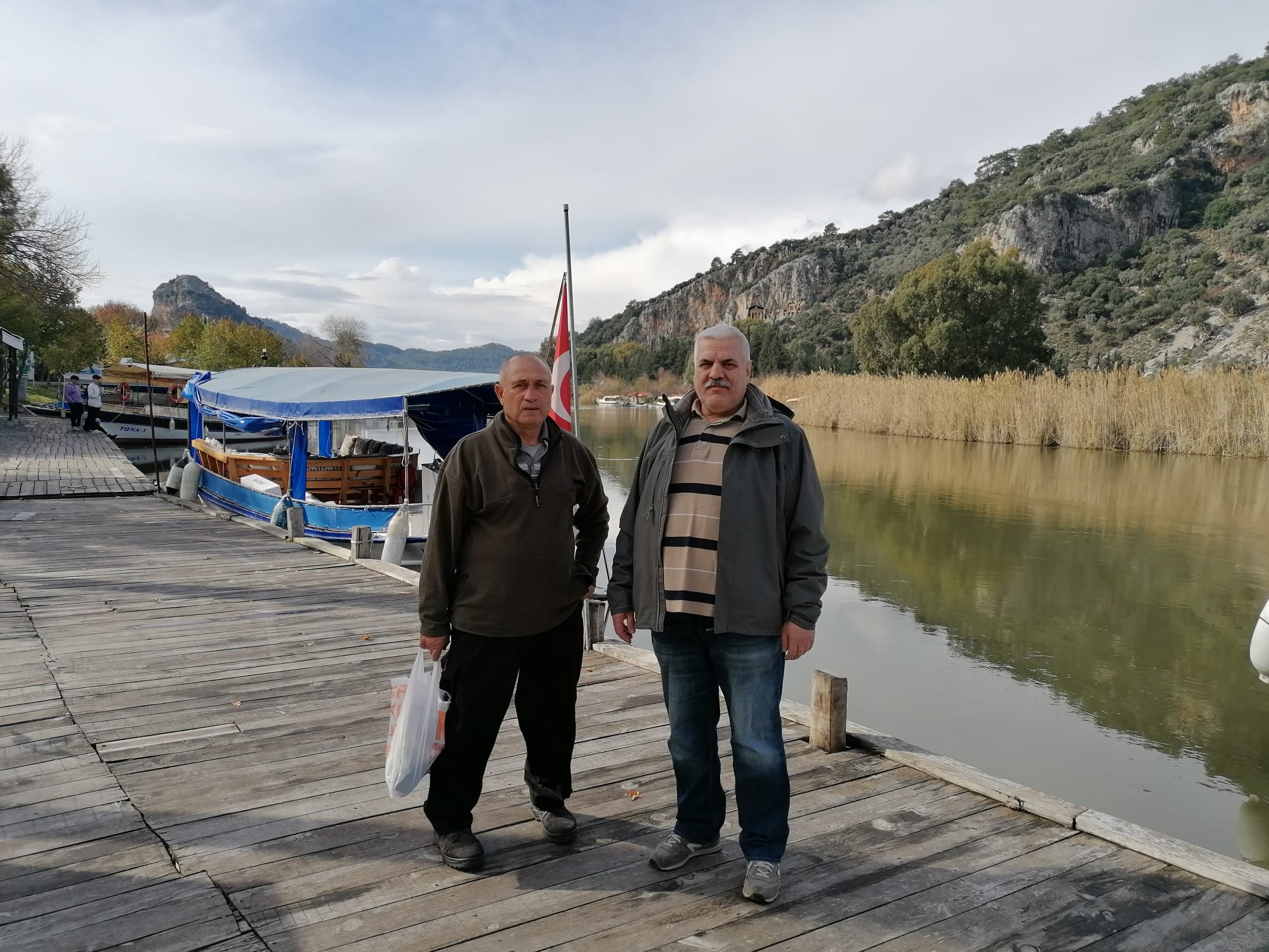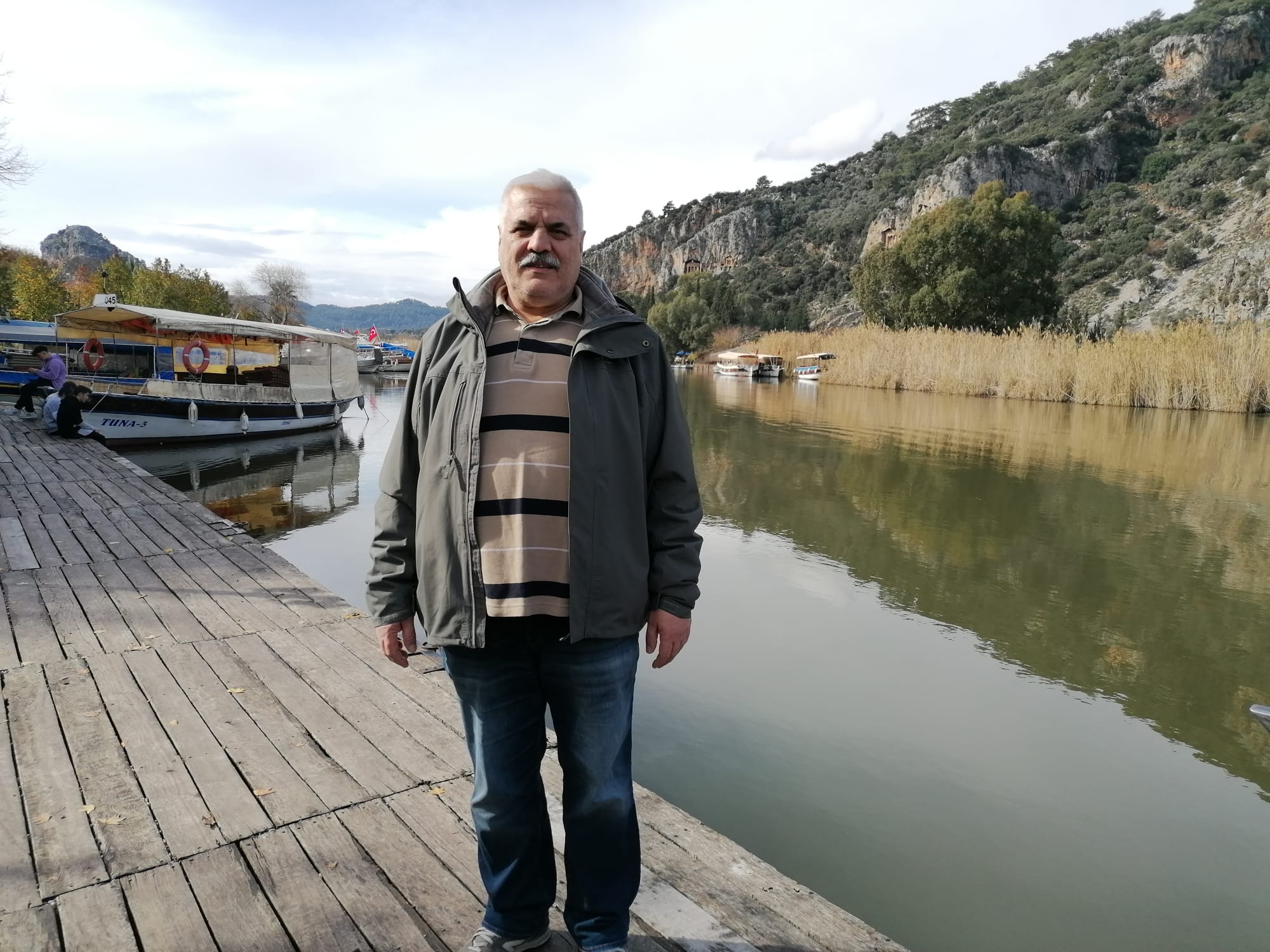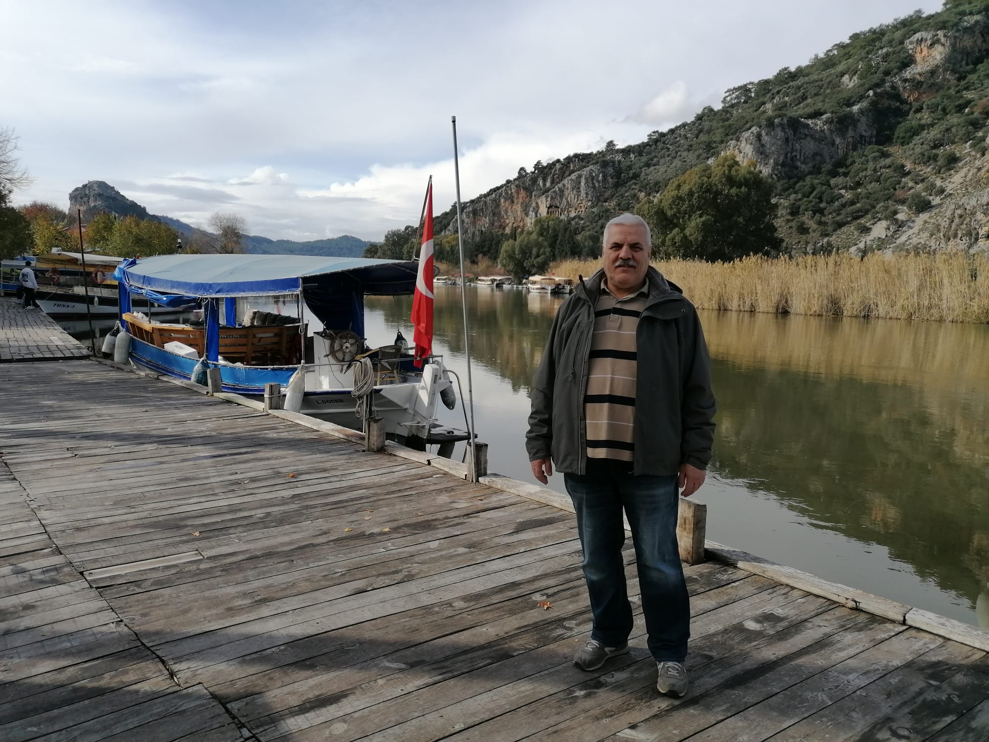 Hah, şimdi tamam. Portre gibi oldu valla. Arkada Kaunos’un kaya mezarları.
